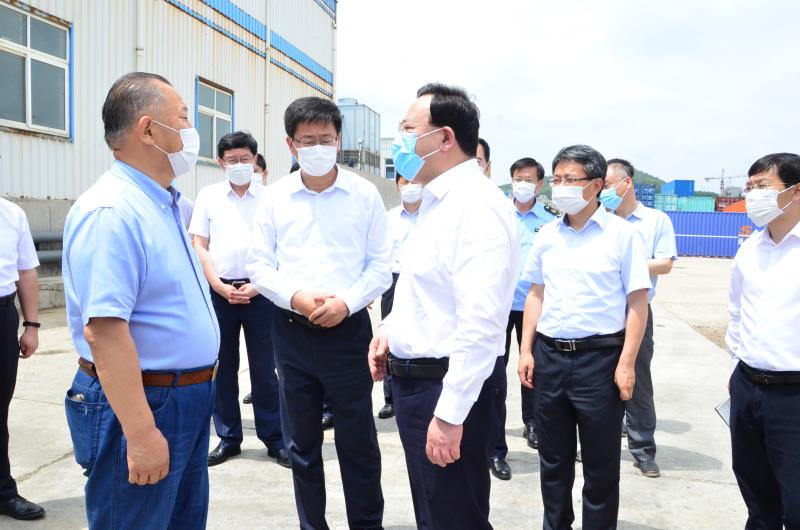 6月9日上午,市委副書記、市長閆劍波攜市公安局、衛生健康委、市場監管局等部門領導,在經濟技術開發區領導的陪同下來威海市宇王集團海洋生物產業園實地調研疫情防控工作,宇王集團董事長苗強及相關領導參加調研。