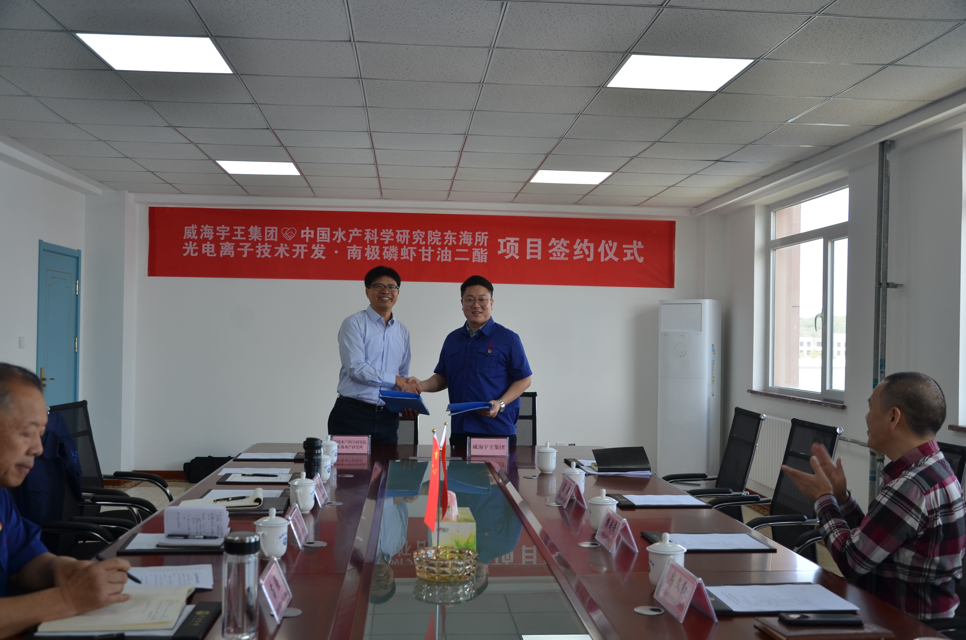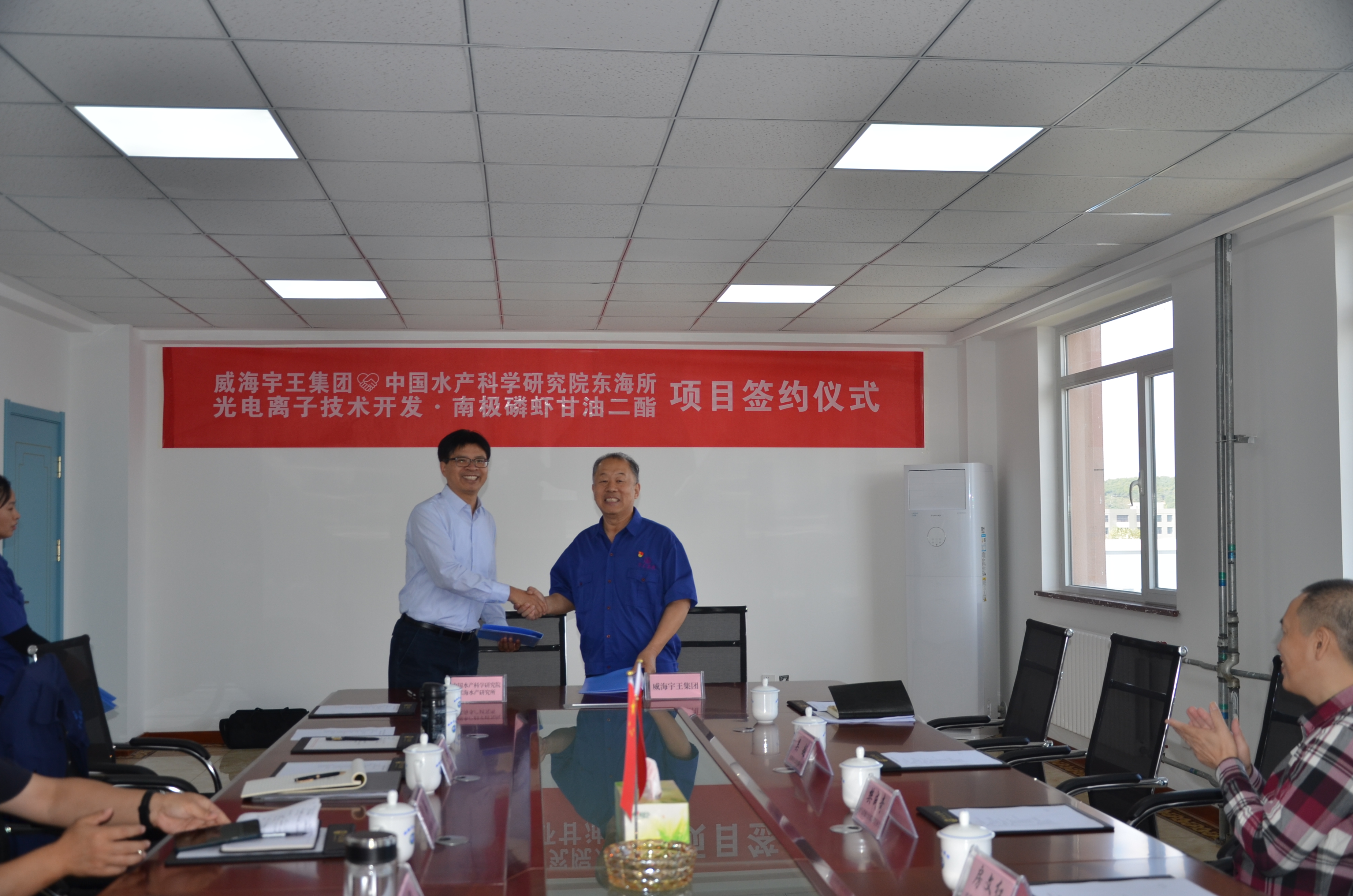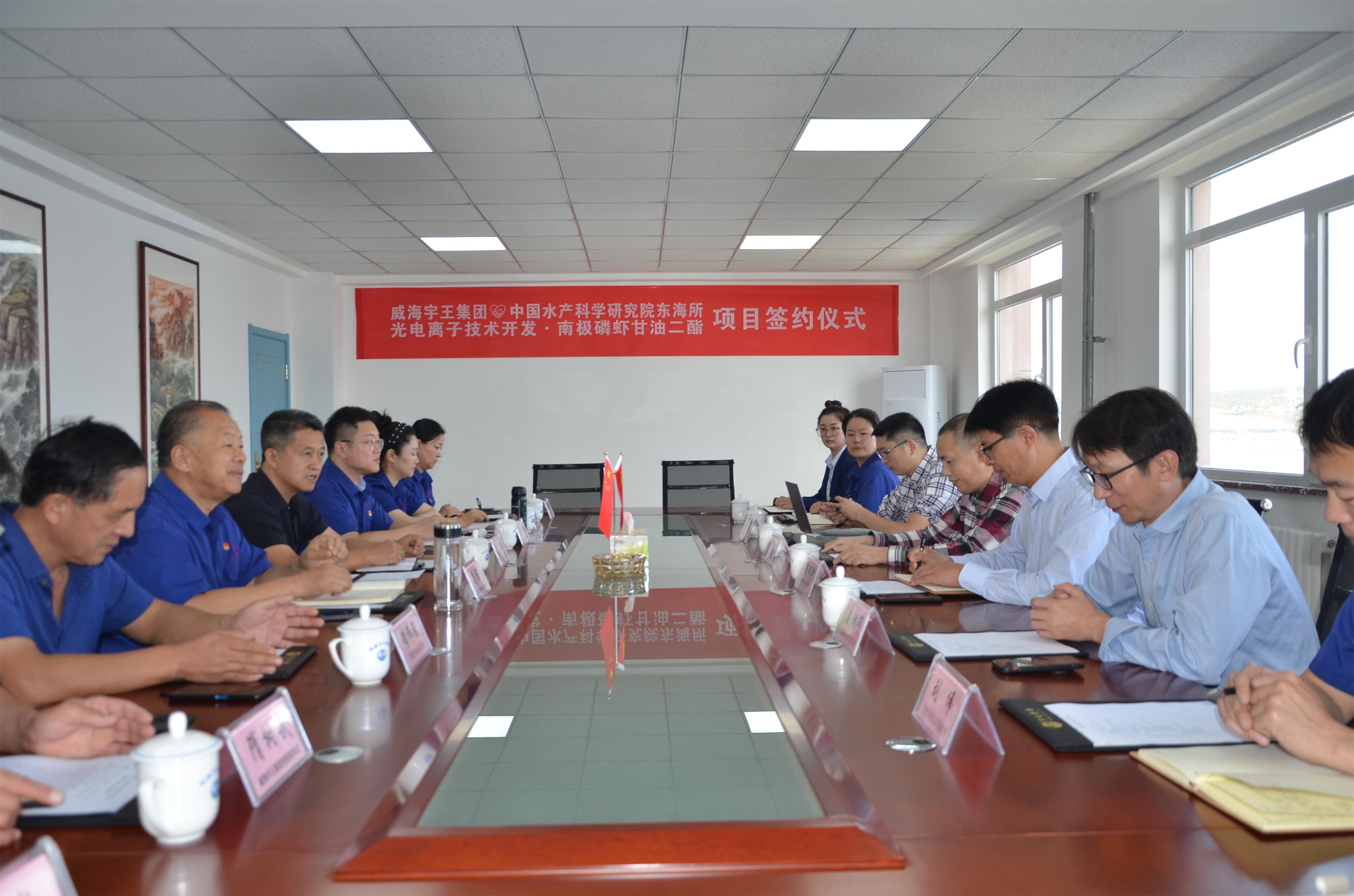 10月10日上午,威海市宇王集團(tuán)與中國水產(chǎn)科學(xué)研究院東海所“光電離子技術(shù)開發(fā)·南極磷蝦甘油二酯”項(xiàng)目簽約儀式在軍融科創(chuàng)大樓會(huì)議室隆重舉行。威海市科技創(chuàng)新發(fā)展中心副主任于海、環(huán)翠區(qū)科技局副局長黃偉強(qiáng)、東海所成果轉(zhuǎn)化處長房文紅、宇王集團(tuán)董事長苗強(qiáng)、總經(jīng)理苗佳琳等出席會(huì)議。
