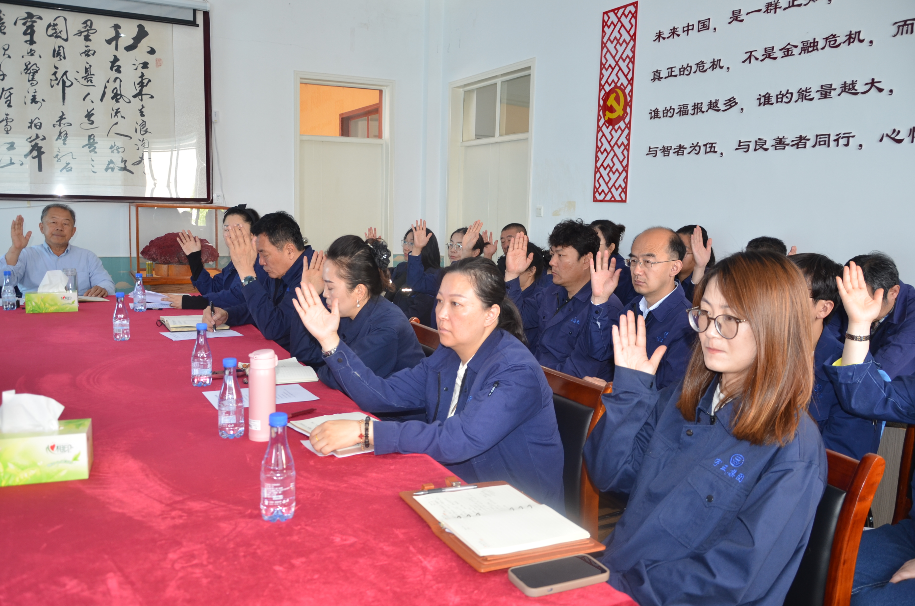 最后苗強董事長在總結講話中,深情回顧了宇王集團的發展歷程,強調了公司不忘初心、牢記使命的發展理念。他指出,宇王集團自成立以來,始終秉持著穩健經營、創新發展的原則,不斷開拓進取,取得了今天的輝煌成就。展望未來,他提出了新的奮斗目標,號召全體股東和員工在新一屆領導班子的帶領下,團結一心、攻堅克難、履職盡責、奮發有為,共同推動宇王集團實現更高質量的發展。