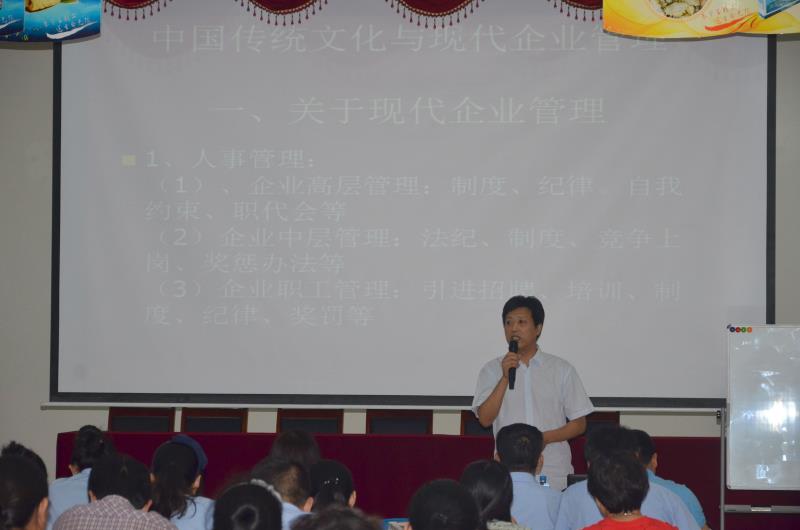 2016827日上午,宇王集團(tuán)在海洋生物館二樓大會(huì)議廳舉行管理干部培訓(xùn),公司全體管理干部參加培訓(xùn)。威海晚報(bào)前編輯部鞠世強(qiáng)主任擔(dān)任主講。培訓(xùn)上,鞠主任對(duì)中國(guó)傳統(tǒng)文化中的儒家、道家、墨家思想進(jìn)行了講解,結(jié)合現(xiàn)代企業(yè)管理,深入闡述了管理干部在企業(yè)中應(yīng)當(dāng)展現(xiàn)的素質(zhì)與方法,此次培訓(xùn)規(guī)范了公司管理干部的責(zé)任意識(shí),進(jìn)一步維護(hù)了公司的管理水準(zhǔn)。