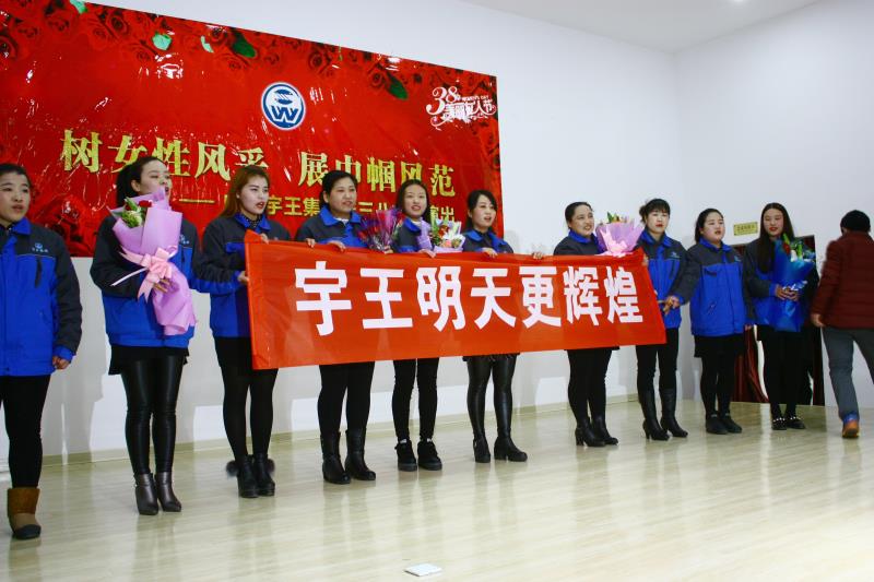 為紀念和慶祝第107“三八國際勞動婦女節(jié)”,38日宇王集團全體女工在職工禮堂隆重舉行了精彩的文藝匯演活動,活動開始前,集團公司董事長苗強對本次活動做了重要講話,表達了對公司女職工的高度贊揚和密切的關心,鼓舞、激勵女職工在崗位上發(fā)光發(fā)熱,努力工作。隨后公司副經(jīng)理劉玉華同志代表女職工做了講話,并預祝本次活動圓滿成功。