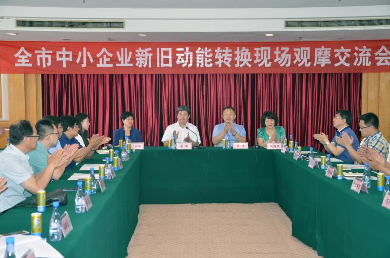 69日上午,市中小企業(yè)局、市中小企業(yè)協(xié)會共同組織召開了全市中小企業(yè)新舊動能轉(zhuǎn)換現(xiàn)場觀摩交流會。市中小企業(yè)局局長蔡琳,市中小企業(yè)協(xié)會會長、宇王集團董事長苗強,與中小企業(yè)協(xié)會常務(wù)理事成員單位及相關(guān)骨干企業(yè)董事長、總經(jīng)理一起參加會議。