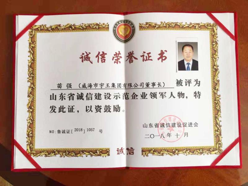 被評選為“誠信建設示范單位”、“山東省誠信建設示范企業領軍人物”是對宇王集團致力于誠信建設工作的肯定和激勵,每一位宇王人定當珍惜榮譽、再接再厲,堅持誠信為先,更好地服務社會。