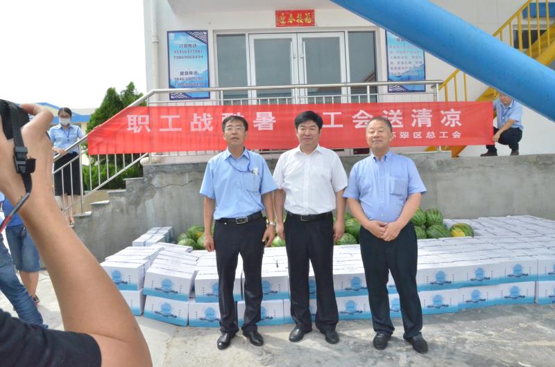 814日上午,環(huán)翠區(qū)總工會黨組書記、主席鄒杰來到宇王集團(tuán),為炎炎烈日下仍堅守崗位的工作人員送去防暑降溫慰問品和貼心的關(guān)懷。